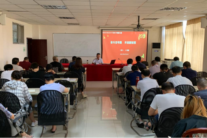 本网讯 刘芳 摄影报道 6月23日下午,太阳成集团tyc122ccvip党委召开党史学习教育专题党课报告会暨中心组第七次集中学习会,党委书记庄瑞刚同志以《奋斗百年史 开启新征程》为题,为太阳成集团tyc122ccvip全体党员员工在1308会议室作专题党课。学校宣传部理论教育科副科长刘志飞同志和张若石同志莅临指导。