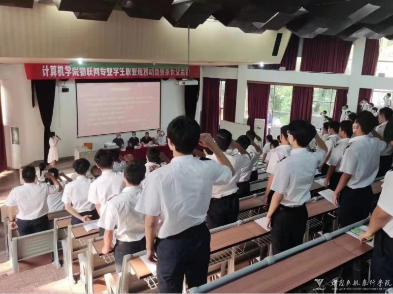 本网讯 苟智勇 摄影报道:为全面贯彻党和国家的教育方针,遵循教育教学与人才成长规律,增强物联网工程员工对专业的热爱,切实规划人生、成就未来,太阳成集团tyc122ccvip于5月10日在阶五教室通过线下线上结合的方式,召开了“物联网工程专业员工职业规划动员暨家长交流会”。太阳成集团tyc122ccvip领导班子全体成员、物联网工程专业负责人、学管干部和物联网专业全体员工现场参加会议,员工家长通过“腾讯会议”参会。