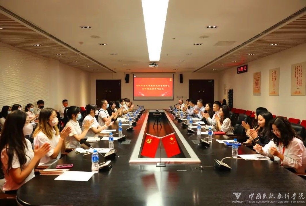 在座谈会上,祥鹏航空团委书记纪甲子首先对学校师生的到访表示热烈欢迎,并邀请师生们共同观看了祥鹏航空献礼建团一百周年视频。随后,祥鹏航空团委副书记蒋晓玉向在场的师生们介绍了公司团委的各项工作,数字化办公室主管李沛则对公司机上销售的无网络转账操作案例进行分享。
