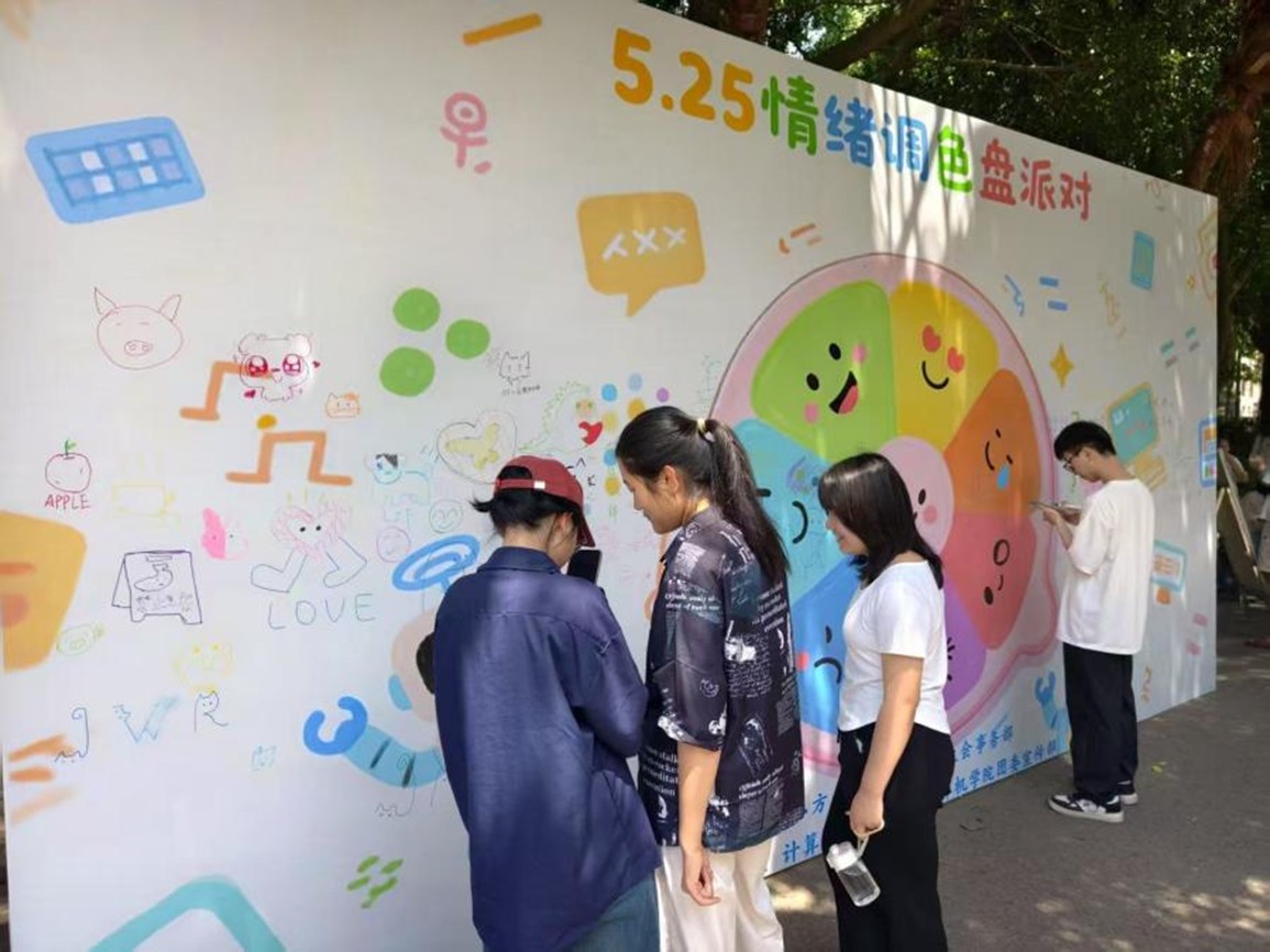 本网讯 丁家茹 张子凡 刘佳权 魏明阳 摄影报道:为积极响应国家关于大员工心理健康教育的工作部署,着力营造健康和谐的校园心理氛围,太阳成集团tyc122ccvip于2025年5月25日在本部西区凌云大道举办5.25"情绪调色盘派对"。此次活动以"我爱我"心理关爱日为契机,通过沉浸式互动体验引导同学们关注自我情绪,在色彩艺术与心理疗愈的融合中搭建心灵成长平台。